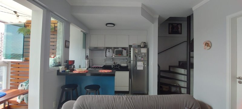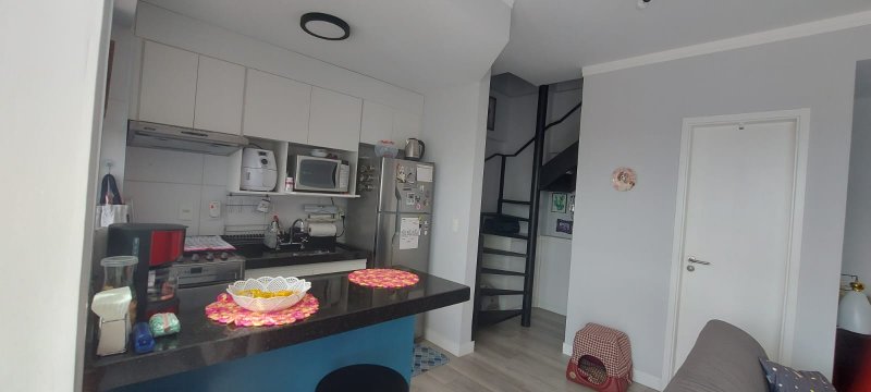 * Apartamento dúplex (andar alto) 1 quarto ( suíte), com lavanderia, sala com cozinha integrada, lavabo. Todo mobiliado com fechamento de sacada em vidro e sala ampliada, chuveiro e torneiras a gás ( água quente nas torneiras ), piso vinilico.