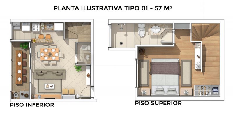 Loft à Venda com 1 dormitório, sendo 1 suíte, 57 m²