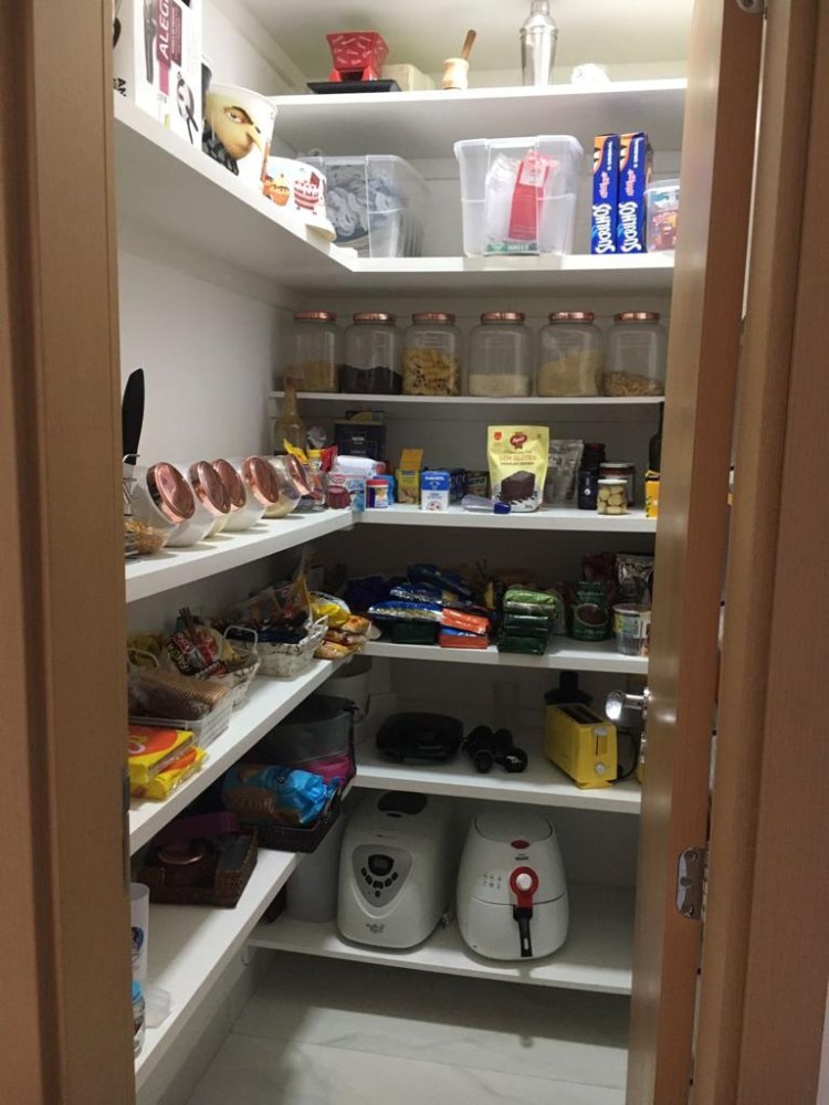 * cozinha com planejados, dispensa