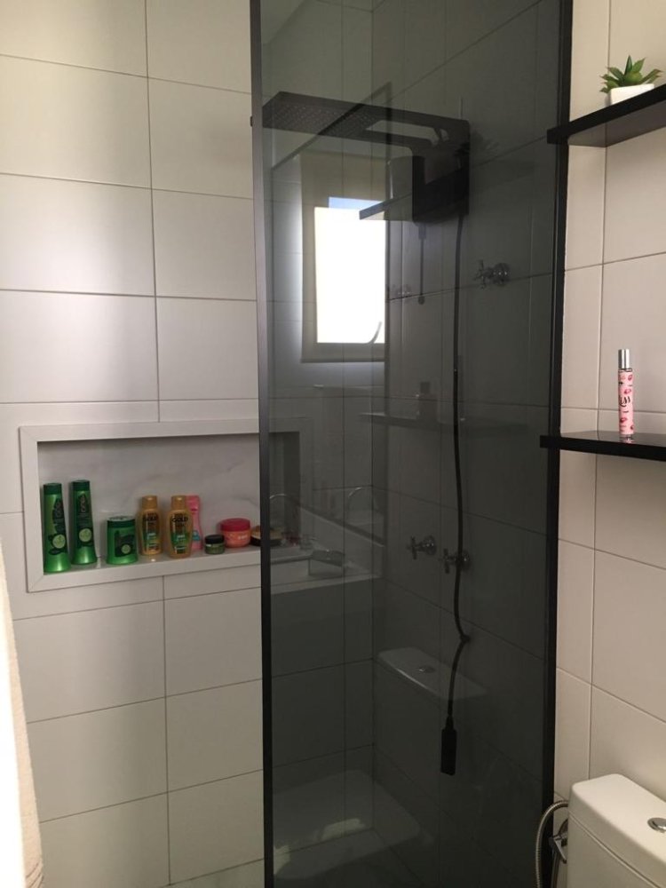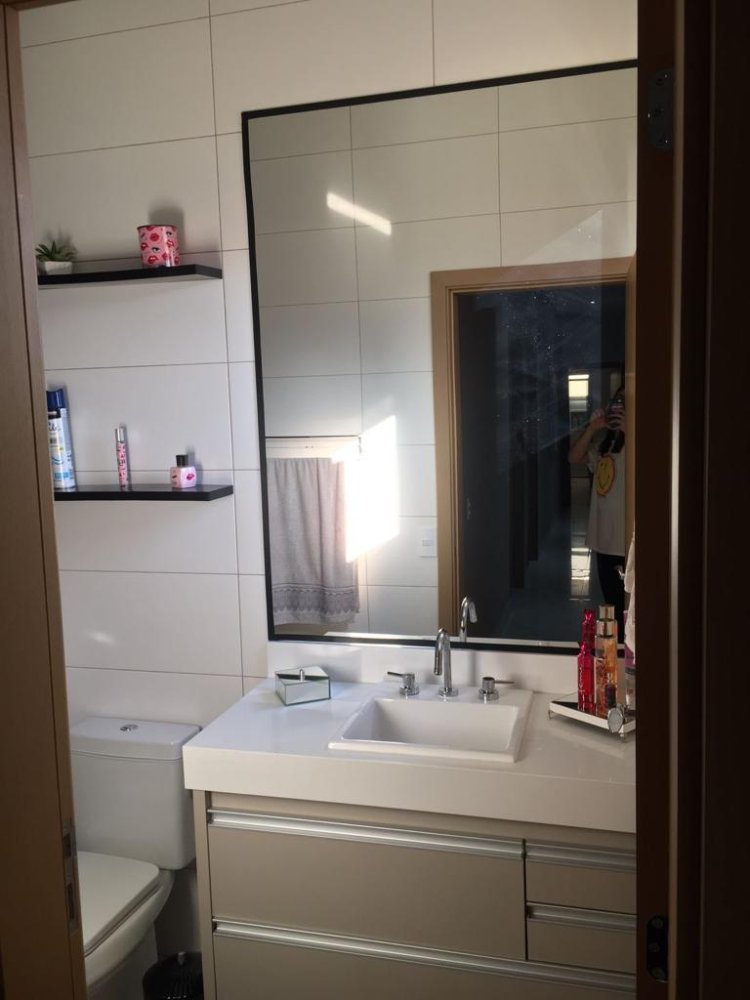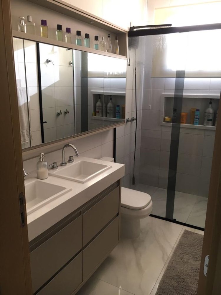* banheiro social com box gabinete e espelho